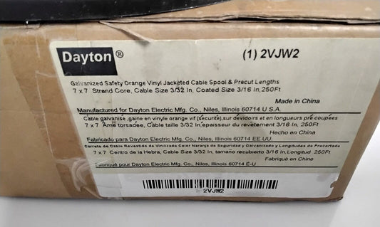 NEW Dayton Orange Vinyl Coated Galvanized Steel Cable Model 2VJW2 with Free Ship